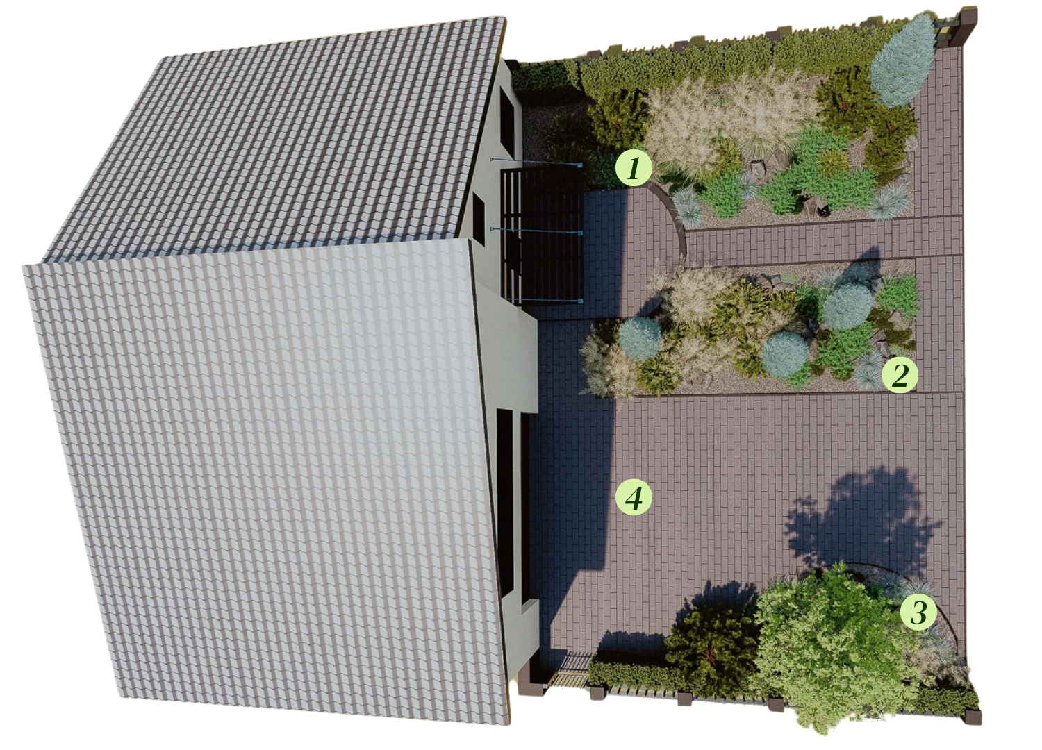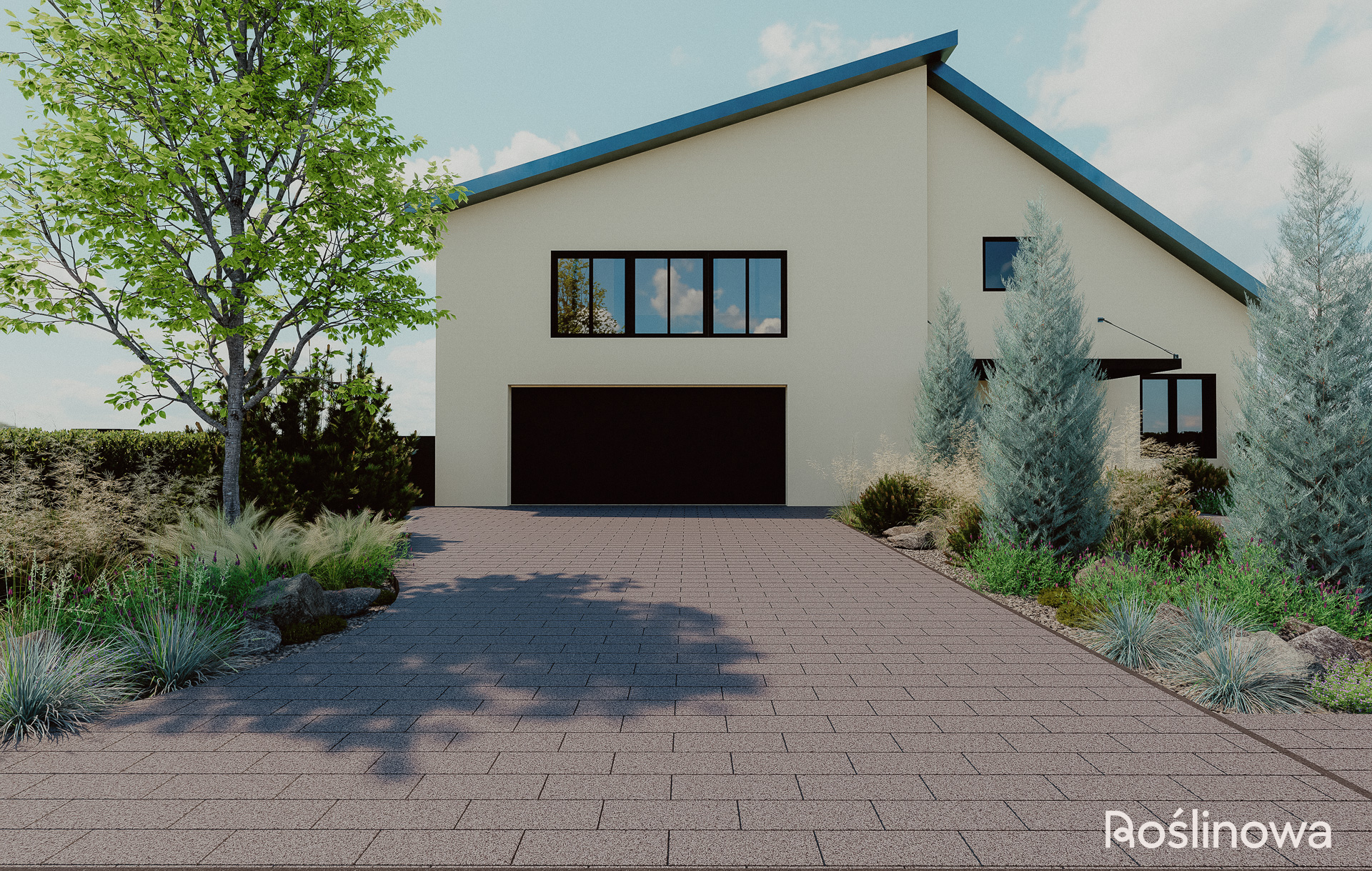 • Trzy rabaty przy ścieżce i wjeździe do garażu.
